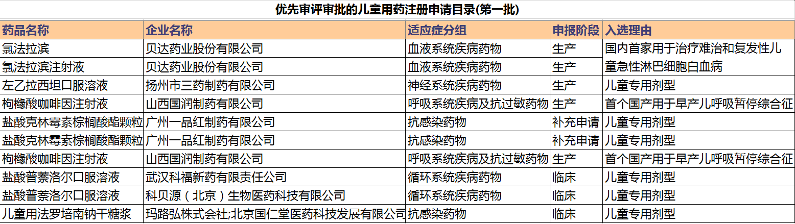 附件2:實(shí)行優(yōu)先審評(píng)審批的兒童用藥注冊(cè)申請(qǐng)名單(第一批)
