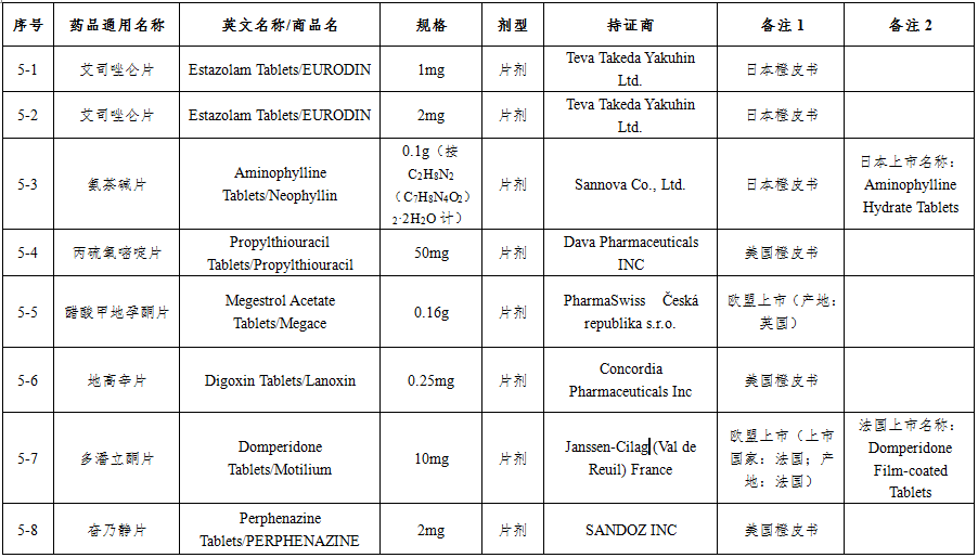 總局關(guān)于發(fā)布仿制藥參比制劑目錄(第五批)的通告