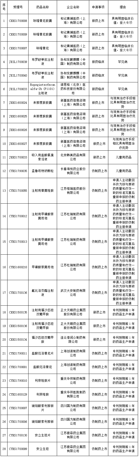 根據(jù)總局《關(guān)于解決藥品注冊(cè)申請(qǐng)積壓實(shí)行優(yōu)先審評(píng)審批的意見(jiàn)》(食藥監(jiān)藥化管[2016]19號(hào)),我中心組織專家對(duì)申請(qǐng)優(yōu)先審評(píng)的藥品注冊(cè)申請(qǐng)進(jìn)行了審核論證,現(xiàn)將擬優(yōu)先審評(píng)的藥品注冊(cè)申請(qǐng)及其申請(qǐng)人予以公示,公示期5日。公示期間如有異議,請(qǐng)?jiān)谖抑行木W(wǎng)站“信息公開(kāi)-->優(yōu)先審評(píng)公示-->擬優(yōu)先審評(píng)品種公示”欄目下提出異議。