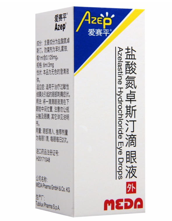 開發(fā)階段:鹽酸氮卓斯汀滴眼液最早由德國MEDA Pharma GmbH & Co. KG公司開發(fā),于1998年在德國首次上市,藥品名稱為Optilast akut Augentropfen,主要適應于治療過敏性結膜炎引起的眼部刺痛癥狀。我國已于2006年批準進口,進口注冊證號為國藥準字H20171048,商品名為愛賽平®(Azep®)。
